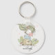 A magical mermaid and starfish illustrated key chain for kid's. Blue pink and green pastel hues on a neutral white background. A cute way for kid's to carry their keys.