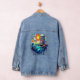 Mermaid Surreal Subconscient Soleil-Kissed Matin et diamants rouges et émeraudes vertes queue et cheveux arc-en-ciel soufflant dans le vent sur la roche sur l'océan. Avec d'autres poissons colorés topiques autour de ses baleines dauphins poisson clown avec un ciel blanc pâle et un arc-en-ciel dans l'arrière - plan. Ce design présente des couleurs éclatantes or brillantes et pose puissante.éclat magique à l'atmosphère sereine.