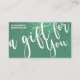 This is the perfect gift certificate business card for a trendy, stylish, girly, and modern businesswoman. This design features a simple white handwritten brush script typography on a faux printed sparkly mermaid teal glitter and mermaid green ombre gradient glamourous and chic background. It's the perfect way to allow your customers to buy a gift for their family and friends and at the same time promote your business.