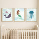 Decorate your Under the Sea Mermaid room with this 3 Print Set. Set includes a mermaid, narwhal and squid. Place in your favorite frames.