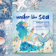 Whimsical, sea themed bridal shower invitation features a watercolor mermaid lounging in the ocean with some fish friends, enjoying the coral reef sights and a tropical drink with an "Under the Sea" caption in violet blue brushstroke style lettering. Art by KL Stock