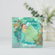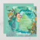 Mermaid birthday party invitation with adorable little mermaid with diamond tiara and pearl on a beautiful green, pink, teal blue and gold sparkle undersea background. This beautiful mermaid birthday party invitation is easily customized for your event by simply adding your details in the font style and colour and wording of your choice. this is a printed design with no real jewels, bows, glitter, etc.