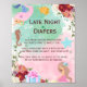Late Night Diaper Sign/Poster. A watercolor mermaid under the sea theme, celebrate with seahorses and mermaids. late night diaper poster/sign. Easily customize the wordings to make it uniquely yours. Visit our mermaids under the sea collection for matching party goods. Napkins, plates, welcome sign, thank you cards and more.