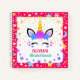 This cute mermaid unicorn face name sketchbook for kids can be personalized using the online tools. Design features pink, purple, teal stars and flowers, with a touch of faux glitter.