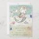 A watercolor and illustrated mermaid themed under the sea birthday party invitation. Mermaid and fish overlay on a watercolor background with creatures of the sea surrounding her. A cute artistic whimsical style invite.
