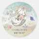 A whimsical watercolor mermaid sticker for a girl's birthday party. customize with your child's name.
