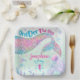 Mermaid watercolor first birthday square paper plate