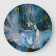 Mermaid with turquoise hair on a rock with a castle behind her.That has a waterfall leading to the ocean sea floor.