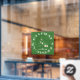 Merriest Christmas and Happy New Year in chic white lettering is featured on this green window cling. Select ANY SIZE and *cling on the front (inside) or back (outside) of the window. (Size shown is 24" x 24", but can be made larger or smaller.)
