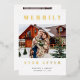Simple and elegant wedding announcement card for the holiday season featuring text in real foil that says "merrily ever after."