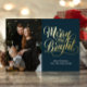 Merry and Bright Blue Gold Calligraphy Photo Foil Holiday Card