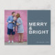 May your days be merry and bright modern design photo holiday greeting postcards for mailing out your holiday wishes to friends, family and business associates. Customize the front of these blue Christmas photo design cards with your vertical photograph and names. Add your custom message and return address to the backside of the postcard.