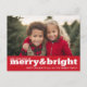 Merry and Bright Bold Modern Photo - red white Holiday Postcard