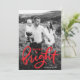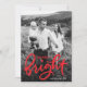 Brighten your loved one's day by sending our Merry and Bright holiday photo card. The modern holiday card displays your full-bleed vertical photo with "Merry + Bright" in a bold, red hand-lettered script overlay. Personalize the front of the cute holiday card by adding your name. The card reverses to feature a simple red and white star pattern.