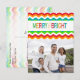 Merry and Bright themed item for Christmas features a colourful citrus chevron pattern palette of tangerine red / orange, turquoise blue, green, golden yellow, and retro style background design colours, modern typography, and a chic pattern of zig-zag stripes. Additional items and options are available.