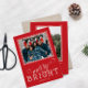 Celebrate the holiday season with this Merry and Bright Christmas Holiday two Photo Card! This modern, minimalist card is perfect for sending your warmest wishes to family and friends. The front design features a photo of you or your loved one with an intricate white frame, with the greetings "Merry and Bright". The back design features a photo of you or your loved one with the same frame and the message "May the holiday season bring joy and happiness to you and your family". The festive colours are sure to brighten up any room in an instant - it's merry and bright all around! Show off your favourite memories from the year on this beautiful photo card that can be cherished forever.