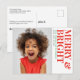 Spread good cheer this Christmas with a Merry and Bright holiday photo card printed on affordable postcards. The postage to send these is less than sending a regular greeting card. This design has bold red text on the side for cheerful emphasis. Underneath is green text with a Merry Christmas greeting and your family's name. Beneath that are the names of your family members. Replace the sample photo with your desired family or holiday photo to spread good cheer all over the place! The back of the card has more text templates set up to include your return address, holiday greeting text and your name.