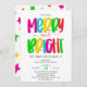 Merry and Bright Christmas Party Invitation. Personalize this colourful and fun Christmas Invitation! This Merry and Bright invitation has 5 bright and festive colours and bright stars on the backside. Just add your party info and send out to your family and friends for that fun & festive holiday party! Visit our website for more photo Christmas cards and Christmas party ideas-->> www.tkmpartyprintables.com