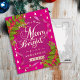 Merry and Bright Christmas Red Foil Holiday Postcard