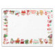 The "Merry and Bright Christmas" small tablecloth on a white background, features a festive design with an array of Christmas decorations, including elves, Santa's, and more, adorning the border. The centre of the tablecloth is kept clear, making it perfect for placing placemats, trivets, and other holiday items. This design ensures your table remains both decorative and functional for all your Christmas gatherings.