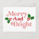 Brighten up your holiday season with this "Merry and Bright" design. Featuring elegant typography in soft pink and red tones, accented with classic holly leaves and berries, this design captures the joy and warmth of the holidays. Perfect for a range of Zazzle products like T-shirts, mugs, and ornaments, it's ideal for adding a festive touch to your decor or gifting to loved ones.