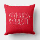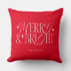 Classic and vintage Christmas themed pillow featuring typography text that says "Merry & Bright" with stars.