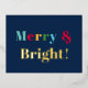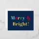 Introducing our Merry and Bright Custom Blue Creative Design Foil Holiday Postcard! This festive and colourful holiday card is designed to spread joy and cheer during the holiday season. With a touch of gold foil for the word "bright," this postcard exudes a sense of elegance and celebration.