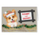 On the front of this cute Christmas card, an adorable Pembroke Welsh Corgi puppy wears a pattern Santa hat and peers over a garland decorated wood panel fence. Beside him is a rustic wood sign that says "MERRY and BRIGHT" in red. The inside of the card has two text fields for you to customize.