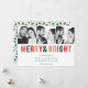 Christmas cards to announce your engagement in a three photo "Merry and Bright" colourful text design. Customized with your text and three square photos. (Crop to squares before uploading for best results.) Contact me if you need assistance. This invite reverses to a coordinating holly design on the back.
