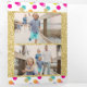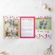 Our Merry and Bright Glitter Confetti Christmas Tri-Fold Holiday Card is perfect for featuring tons of your favourite photos from the year, along with a family update. This 6 panel card features a cheerful, colourful, merry and bright Christmas and holiday colour confetti design with gold faux glitter confetti accents. The gold glitter effect is also featured throughout the card in the photo frames and newsletter, update page. This is the perfect family year in review style card with plenty of room to customize with your own text and photos.