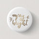 Merry and bright - gold 1 inch round button