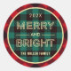 Merry and Bright Gold Green Red Plaid Round Sticker.