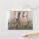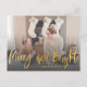 Elegant and simple Christmas greetings card. Stylish 'Merry and Bright'' text is in gold with 1 photo. Customize with your unique information.