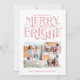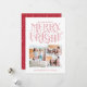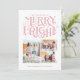 This festive Christmas card features the greeting Merry and Bright in hand lettering alongside three family photos. Customize the background colour to match your photos!