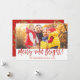 Merry and Bright Christmas Hand Lettered Script Photo Card. The photo and text of this hand lettered brush script can be updated and customized with your photo and family name. This card also displays the family name and a gold foil wreath on the back of the Christmas Card.