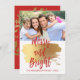 Merry and Bright Christmas Holiday Hand Lettered Script Photo Card. The photo and text of this hand lettered brush script can be updated and customized with your photo and family name. This card also displays the family name and a gold foil wreath on the back of the Christmas Card.