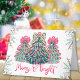 Add a splash of personality to your holiday greetings with this vibrant Christmas card featuring whimsical trees adorned with bright decorations and a chic leopard-print bow. The bold colours and playful design make it perfect for spreading festive cheer to friends and family. With a matching design inside and plenty of space for your personalized message, this card is sure to stand out in any holiday collection.