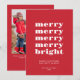 Merry and Bright Modern Minimal Red Photo Holiday Card