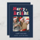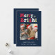 Capture the magic of the holiday season with our beautiful blue Christmas card. The bold typography in red, cream, and green spells out "Merry & Bright," perfectly setting the festive tone. Add your family photo to the customizable template, and personalize it further by including your loved ones' names. Spread joy and create cherished memories with this merry and bright Christmas card.