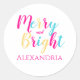 Merry and Bright Personalized Colourful Christmas Classic Round Sticker