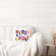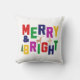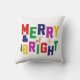 Merry and Bright Pine Tree Reindeer Snowman Throw Pillow