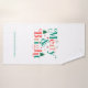 Merry and bright modern font, pine trees, and snowflakes on white background.