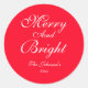 Merry And Bright Script Name Chic Red Christmas Classic Round Sticker