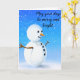 Merry and bright snowman on crisp winter blue sky card