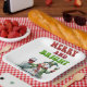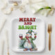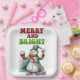 A funny and cheerful Christmas design showcases a jolly snowman dressed in a long green coat with a matching top hat, red scarf, and mittens. He holds a glass of red wine in one hand and white wine in the other. The festive red and green text reads, "Merry and bright." This design is available on a variety of products, making it a perfect gift for wine lovers.