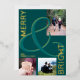Merry And Bright Typography 3 Photo Teal Gold Foil Holiday Card