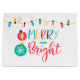 A fun loving design with a string of lights above handwritten typography words Merry and Bright by Ness Nordberg, complimented by some Christmas Ornaments with snowflake decorations. All artworks © Ness Nordberg. All rights reserved worldwide. The unauthorized reproduction or distribution of a copyrighted work is illegal.