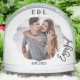 Merry and Engaged Couple Photo Holly Script Snowglobe