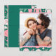 The Ugly Sweater Christmas 1st Year Married Postcard has a bold yet stylish vibe, blending a retro and botanical theme with a pastel pink and forest green colour scheme. The background is a rich, deep forest green, which creates a striking contrast for the lighter, more playful elements on top.