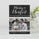 Elegant, timeless, classic, dark black and charcoal grey damask background pattern in bold black and white. The newlywed couple is finally married, and ready to show off their new life together with custom photo Holiday cards with the theme "married and merry" . Wish family and friends and wedding guests a great time with this black and white damask background.